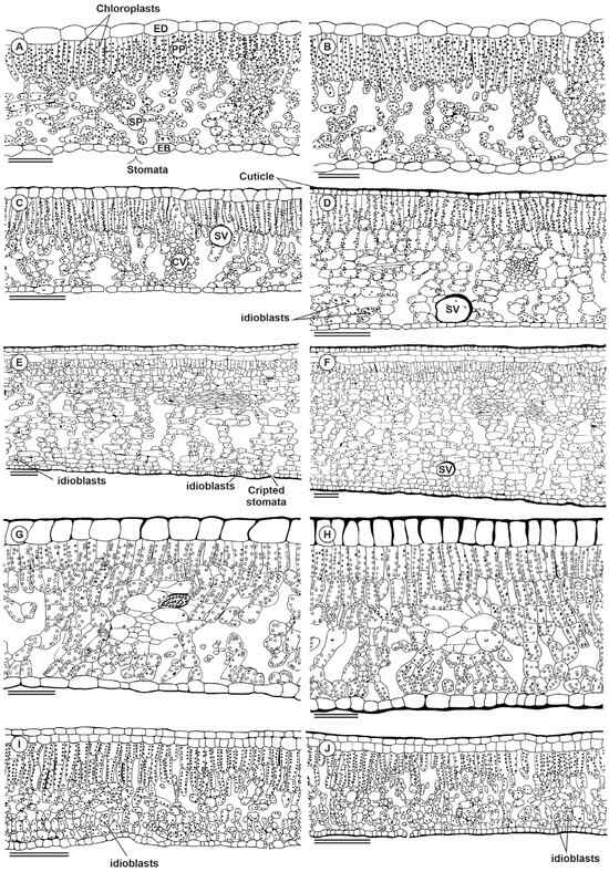- Carey, G. Comparative anatomy of leaves from species in two habitats around Sidney. Proc. Linn. Soc. N. S. W. 1938, 63, 439–450. [Google Scholar]