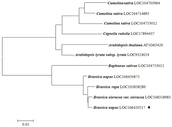 4.2. BnaC09.OGT Clone and Phylogenetic Analysis