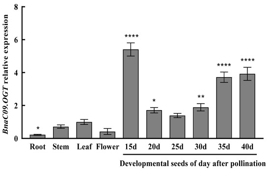 2.3. Tissue-Specific Expression Analysis of BnaC09.OGT