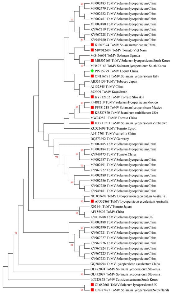 2.2. Whole Genome Sequence and Characterization of ToMV-Loquat Isolate