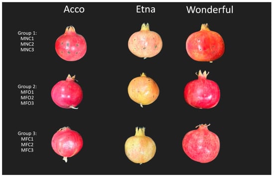 - Schaller, A.; Chater, J.M.; Vallad, G.E.; Moersfelder, J.; Heinitz, C.; Deng, Z. Pomegranate Ceultivars with Diverse Origins Exhibit Strong Resistance to Anthracnose Fruit Rot Caused by Colletotrichum gloeosporioides, a Major Disease in Southeast United States. Horticulturae 2023, 9, 1097. [Google Scholar] [CrossRef]