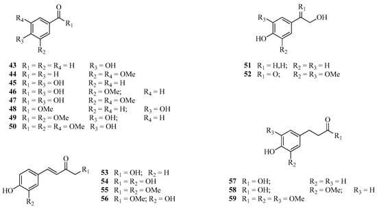 Aromatic compounds C6C1 (43–50), C6C2 (51–52), and C6C3 (53–59) from C. parqui.