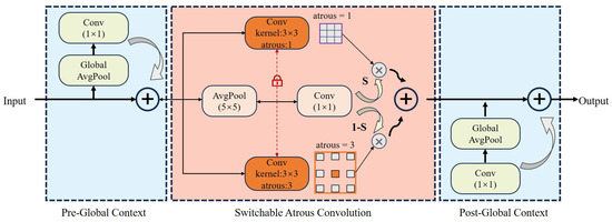 Qiao et al. [26] use to denote the convolution operation, with as the input, as the output, weights as , and the atrous rate as Then, we can convert a convolutional layer to SAC as follows: