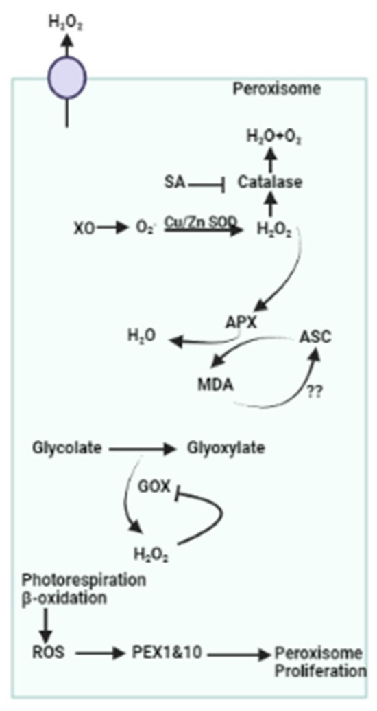 4.2.3. Peroxisomes: ROS Production and Scavenging Mechanisms