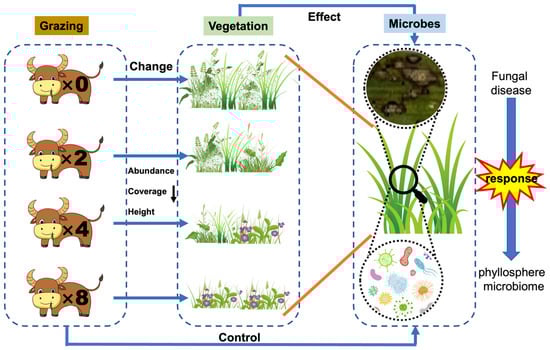 11. Liu, M.; Mipam, T.D.; Wang, X.; Zhang, P.; Lin, Z.; Liu, X. Contrasting Effects of Mammal Grazing on Foliar Fungal Diseases: Patterns and Potential Mechanisms. New Phytol. 2021, 232, 345–355. [Google Scholar] [CrossRef] [PubMed]