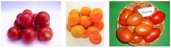 The synergistic interaction between sun and ovate or fs8.1 suggested that the pathways involving sun, ovate and the gene(s) underlying fs8.1 may converge at a common node [33,39]. Meanwhile, most of our investigated tomatoes had slightly flattened fruits, and only several had distinguished features with obovoid, round or circular fruit shapes. Only one tomato hybrid ‘Auksiai’ had orange-coloured fruits, while all the rest of the tomato fruits of investigated varieties and hybrids were red-coloured. Geographic origin, cultivation status, fruit size, shape, and growth type were found to exhibit significant genetic differentiation by using SSR markers [17].