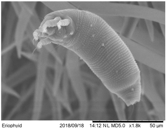 - Kumar, P.L.; Fenton, B.; Duncan, G.; Jones, A.T.; Sreenivasulu, P.; Reddy, D.V.R. Assessment of variation in Aceria cajani (Acari: Eriophyidae) using analysis of nuclear rDNA ITS regions and scanning electron microscopy: Implications for the variability observed in host plant resistance to pigeonpea sterility mosaic disease. Ann. Appl. Biol. 2001, 139, 61–73. [Google Scholar] [CrossRef]