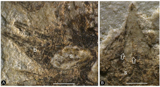 - Santos, A.A.; Wang, X. Pre-Carpels from the Middle Triassic of Spain. Plants 2022, 11, 2833. [Google Scholar] [CrossRef] [PubMed]