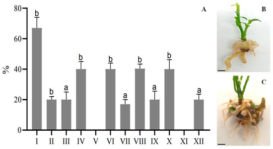 - Mitrofanova, O.V.; Lesnikova-Sedoshenko, N.P.; Ivanova, N.N.; Smykova, N.V.; Mitrofanova, I.V. In vitro propagation and preservation of promising chrysanthemum cultivars and hybrid forms. In Proceedings of the XXX International Horticultural Congress IHC2018: II International Symposium on Micropropagation and In Vitro Techniques 1285, Istanbul, Turkey, 12–16 August 2018. [Google Scholar]