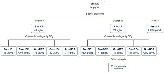2.2. Activity of S. molle Hexane and Chloroform Fractions