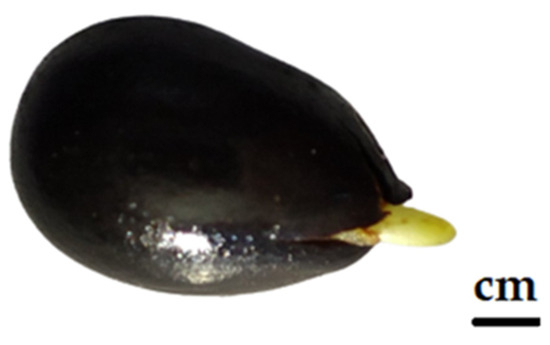 The ratio of embryo (E) to endosperm (S) provides insights into seed quality and its germination potential [63]. The measurements of embryonic development were performed on seeds of P. peregrina from the Institute’s collections at the following seed stages: fresh seed, seed with a ruptured seed coat, and seed with an emerged radicle. The seeds were cut in half and observed under a binocular microscope (Leica Microsystems GmbH, Wetzlar, Germany) at 6.3× magnification. The Leica DFC290 HD digital microscope camera (with Leica LAS v4.11 software) was used to photograph the embryos. The lengths of the embryos were analyzed using ImageJ image analysis software 1.41o (National Institutes of Health, Bethesda, MA, USA).