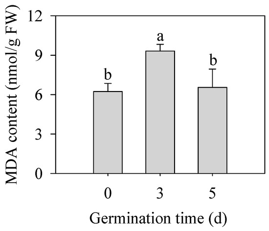 2.3. Effect of Germination Time on the Malondialdehyde (MDA) Content in Finger Mibbllet Sprouts