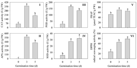 2.4. Effects of Germination Time on the Antioxidant Enzyme Activity and Antioxidant Capacity in Finger Millet Sprouts