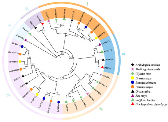 - Ruan, Q.; Wang, Y.; Xu, H.; Wang, B.; Zhu, X.; Wei, B.; Wei, X. Genome-wide identification, phylogenetic, and expression analysis under abiotic stress conditions of Whirly (WHY) gene family in Medicago sativa L. Sci. Rep. 2022, 12, 18676. [Google Scholar] [CrossRef] [PubMed]