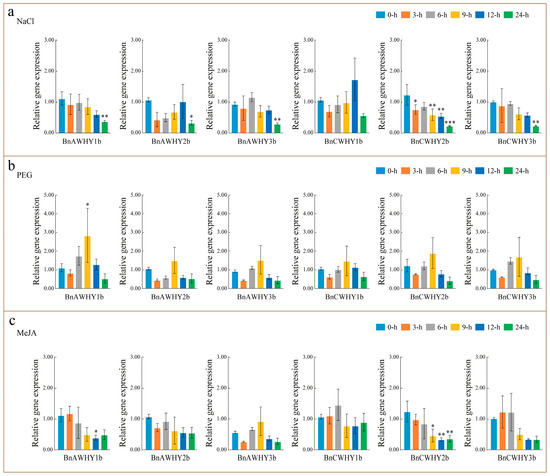 3.10. Expression Pattern Analysis of BnWHY Genes by qRT-PCR