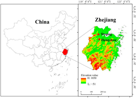 The location of Hangzhou and Deqing of Zhejiang Province, southeast China.