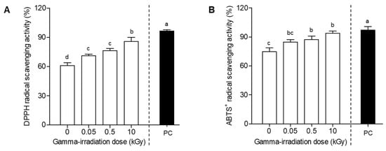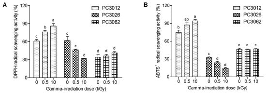 2.2. Radical Scavenging Ability of E. maculata Callus after Different Doses of Gamma Irradiation