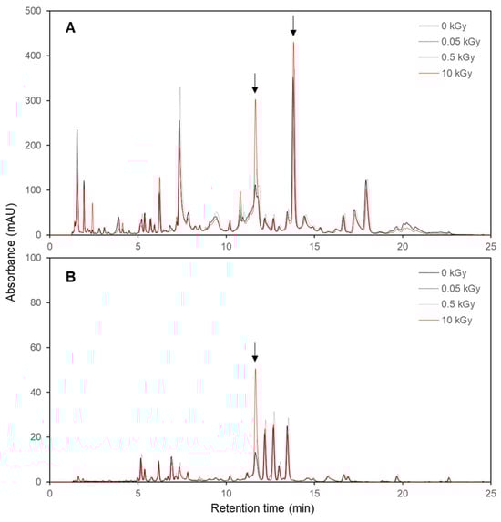- Song, H.P.; Kim, D.H.; Jo, C.; Lee, C.H.; Kim, K.S.; Byun, M.W. Effect of gamma irradiation on the microbiological quality and antioxidant activity of fresh vegetable juice. Food Microbiol. 2006, 23, 372–378. [Google Scholar] [CrossRef]