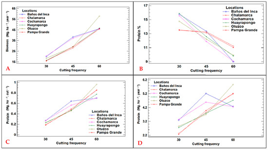 | Factors | Green Forage (Mg. ha−1) | Biomass (Mg. ha−1) | Seeds (kg. ha−1) | Protein (%) |
