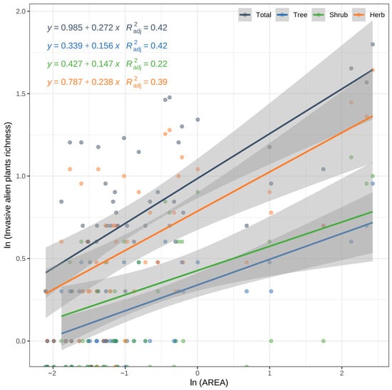 - Gassó, N.; Pino, J.; Font, X.; Vilà, M. Regional Context Affects Native and Alien Plant Species Richness across Habitat Types. Appl. Veg. Sci. 2012, 15, 4–13. [Google Scholar] [CrossRef]