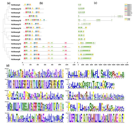 2.3. Classification, Phylogenetic Analysis, Gene Structure, and Conserved Motifs of the HcNramp Gene Family