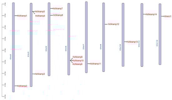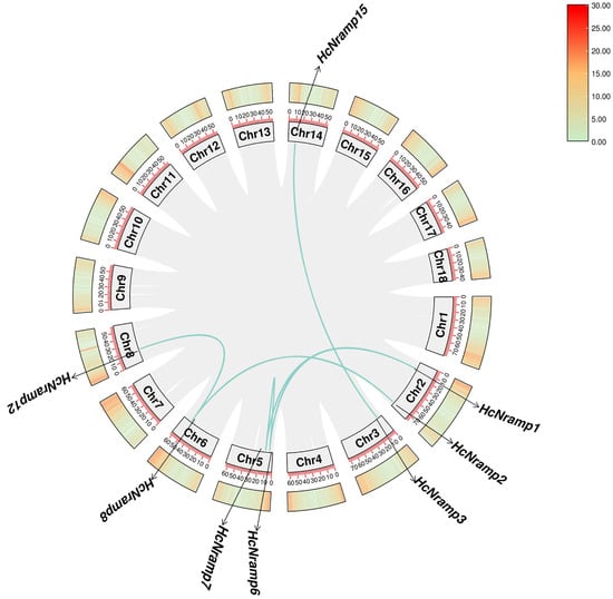 2.5. Chromosomal Localization and Collinearity Analysis of HcNramp Genes