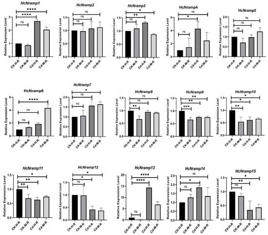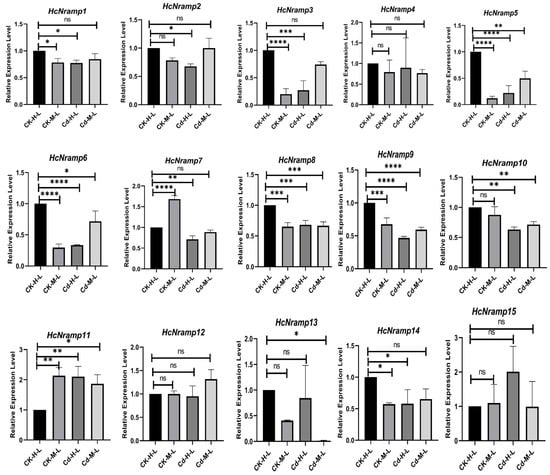2.6. Tissue-Specific Expression Analysis of the HcNramp Genes