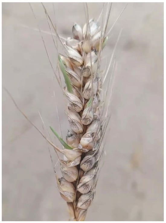 Wheat seeds exhibiting pre-harvest sprouting (courtesy of J. Barrero-Sánchez; https://people.csiro.au/B/J/Jose-Barrero (accessed on 25 May 2024 )).