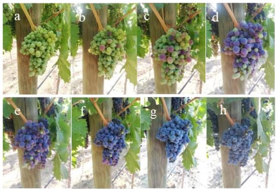 13. Pagay, V.; Cheng, L. Variability in Berry Maturation of Concord and Cabernet Franc in a Cool Climate. Am. J. Enol. Vitic. 2010, 61, 61–67. [Google Scholar] [CrossRef]