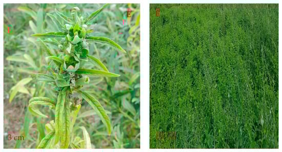 Sesame is grown in an area of 12.81 million ha, and 6.55 million metric tons were produced worldwide in 2022 [3,4]. Evidence suggests that the crop originated in Africa, where significant genetic diversity includes many wild relatives that are endemic to the various regions of this continent. Hence, Africa is considered its center of diversity. Sudan is the largest producer of sesame seed in the world followed by Myanmar and India [3,4].