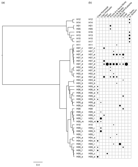 - Bandelt, H.J.; Forster, P.; Röhl, A. Median-Joining Networks for Inferring Intraspecific Phylogenies. Mol. Biol. Evol. 1999, 16, 37–48. [Google Scholar] [CrossRef]