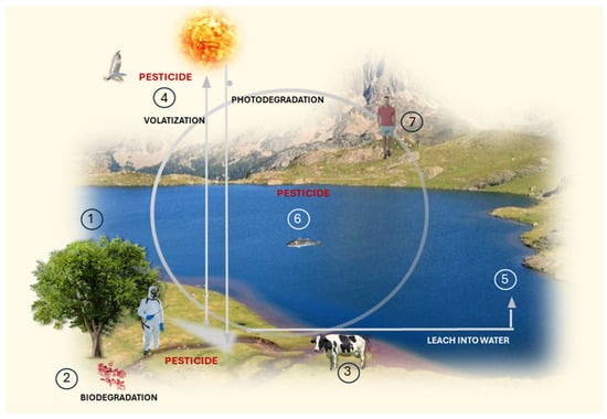 Some pesticides, such as carbofuran, carbendazim, dichlorvos, anthraquinone, dinocap, paraquat, methomyl, aldicarb, and diuron, have been banned in many countries due to their toxicity to humans [73]. Pesticides can lead to the bioaccumulation of contaminants in food chains, which are widely spread in terrestrial and aquatic environments. When applied excessively and washed away into water bodies during rainfall, they can cause the death of fish and other aquatic life. They can also harm soil texture, microbes, animals, and plants [74].