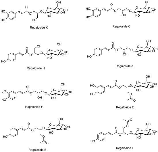 Chemical structures of the eight regalosides selected as a marker compound for quality control of BLL.