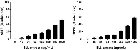 Free radical scavenging activities of BLL extract. The cationic and anionic radical scavenging activities of BLL extract were determined using ABTS and DPPH assays, respectively (n = 2).
