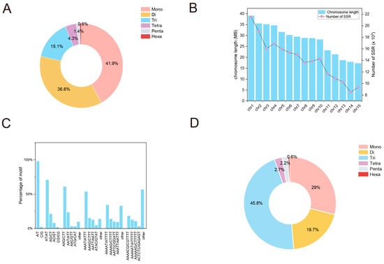APA StyleYang, X., Wang, Y., Yang, Y., Shareng, T., Xing, Y., Bai, G., Xing, Z., Ji, Y., Liu, L., & Cao, G. (2024). Genome-Wide Characterization and Development of Simple Sequence Repeat Markers for Molecular Diversity Analyses in Yellowhorn (Xanthoceras sorbifolium Bunge). Plants, 13(19), 2794. https://doi.org/10.3390/plants13192794