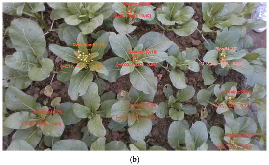The rapid detection of flowers and fruits is crucial for the development of automated flower and fruit harvesting robots [5,6], and the prerequisite for accurate and selective harvesting is the efficient detection of targets using computer vision, which is a challenging problem [7]. Traditional machine vision techniques focus on intuitive features as the basis for flower and fruit recognition. With the continuous development of traditional target detection algorithms, the performance improvement of existing traditional algorithms has become extremely limited [8]. However, the current research of maturity detection in leafy vegetables, particularly Chinese cabbage, faces unique challenges. Compared to the obvious ripening characteristics of fruits, vegetables have very little variation among individuals at different growth stages. Leafy vegetables, on the other hand, have fewer detectable traits and pose significant hurdles for non-destructive maturity evaluation [9]. Consequently, there is a notable dearth of research focusing on non-invasive pre-harvest maturity assessment of Chinese cabbage. Drawing inspiration from China’s established industrial norms for grading flowering Chinese cabbage, the discernible changes in the morphology and coloration of cabbage buds across maturity stages emerge as crucial indicators for maturity assessment [10]. Thus, there is a pressing need to develop innovative approaches that can overcome the limitations of traditional methods and harness these indicators for accurate and timely maturity detection in leafy vegetables.