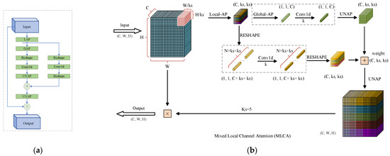 Mixed Local Channel Attention (MLCA): (a) Structural diagram; (b) Schematic diagram.