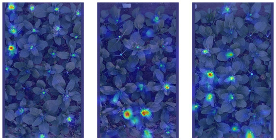While this study has achieved notable advancements in detecting the maturity of flowering Chinese cabbage, it is crucial to acknowledge that there is potential for enhancing the system’s performance, and the present research has the following limitations: (1) Improving the interpretability of the model. Given the interpretability challenges associated with convolutional neural networks, it is recommended that visualization tools such as heatmaps be employed to parse the model’s decision-making basis during the detection process. This approach allows for the assessment of the impact of different locations on the detection efficacy of flowering Chinese cabbage. As illustrated in Figure 13, the degree of red hue intensity in the heatmap correlates with its influence on target detection. (2) The YOLOv8-Improved model performed well in detecting the vast majority of flowering Chinese cabbage, but still faced several challenges. Specifically, immature Chinese cabbage has limited detection accuracy due to its low pixel occupancy in the image, coupled with the high similarity between the shoots and the background and the fact that they are often occluded by the surrounding leaves. To solve this problem, future research will be devoted to refining the classification system by expanding the dataset containing samples from different growth periods to enhance the model’s ability to recognize subtle features. At the same time, the model structure is optimized to enhance its ability to extract and understand features in complex scenarios, aiming to reduce the loss of key semantic information so as to achieve more accurate detection of immature Chinese cabbage [42]. (3). This study preliminarily verifies the feasibility of real-time detection and preliminary estimation of the spatial location of flowering Chinese cabbage using RGB-D cameras, but the current 3D localization accuracy is not yet sufficient to support the demand for refined automated picking operations. Given that the core focus of this study is to improve the target detection accuracy, there are deficiencies in the in-depth exploration and experimental validation of the tracking algorithm. In the future, we will focus on combining the efficient target detection network with advanced tracking algorithms and optimize the algorithm design and parameter adjustments to achieve a seamless connection between detection and tracking tasks, so as to satisfy the needs of automatic harvesting systems for high-precision real-time tracking and detection of targets [43].