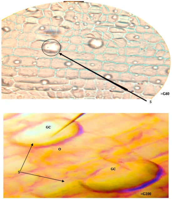 Stomatal characteristics of T. latifolia leavs (Witness). GC: Guard Cell; S: Stomata; O: Ostiole.
