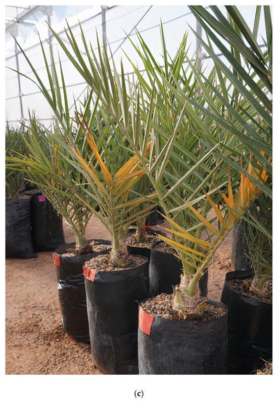 Control batches (0 mM NaCl) of the four date palms (Phoenix dactylifera L.) utilized in this study: (a) Nejda, (b) Boufeggous, (c) Mejhoul, and (d) Bouskri.