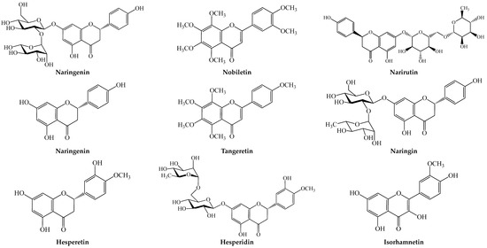 - Gandhi, G.R.; Vasconcelos, A.B.S.; Wu, D.T.; Li, H.B.; Antony, P.J.; Li, H.; Geng, F.; Gurgel, R.Q.; Narain, N.; Gan, R.Y. Citrus Flavonoids as Promising Phytochemicals Targeting Diabetes and Related Complications: A Systematic Review of In Vitro and In Vivo Studies. Nutrients 2020, 12, 2907. [Google Scholar] [CrossRef] [PubMed]