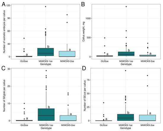 - Tvorogova, V.E.; Krasnoperova, E.Y.; Kudriashov, A.A.; Kuznetsova, K.A.; Potsenkovskaya, E.A.; Fedorova, Y.A.; Lutova, L.A. Transcriptomic Analysis of Medicago truncatula Calli with MtWOX9-1 Overexpression. Vavilov J. Genet. Breed. 2019, 23, 691–699. [Google Scholar] [CrossRef]
