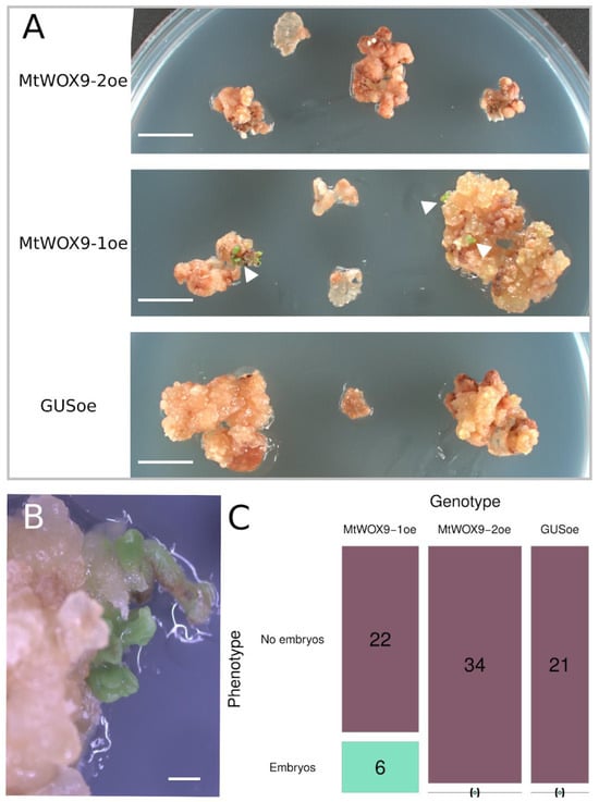 - Kadri, A.; Grenier De March, G.; Guerineau, F.; Cosson, V.; Ratet, P. WUSCHEL Overexpression Promotes Callogenesis and Somatic Embryogenesis in Medicago truncatula Gaertn. Plants 2021, 10, 715. [Google Scholar] [CrossRef]