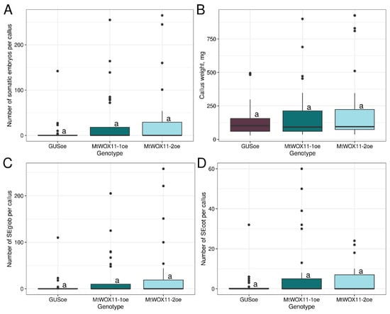 2.4. MtWOX11-1 and 2 Do Not Stimulate SE in the Embryogenic Line