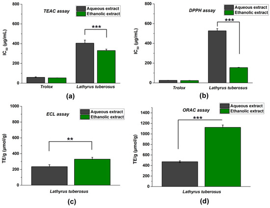 - Llorent-Martinez, E.J.; Ortega-Barrales, P.; Zengin, G.; Mocan, A.; Simirgiotis, M.J.; Ceylan, R.; Uysal, S.; Aktumsek, A. Evaluation of antioxidant potential, enzyme inhibition activity and phenolic profile of Lathyrus cicera and Lathyrus digitatus: Potential sources of bioactive compounds for the food industry. Food Chem. Toxicol. Int. J. Publ. Br. Ind. Biol. Res. Assoc. 2017, 107, 609–619. [Google Scholar] [CrossRef] [PubMed]
