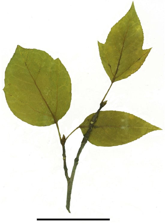 - Ellis, B.; Daly, D.C.; Hickey, L.J.; Johnson, K.R.; Mitchell, J.D.; Wilf, P.; Wing, S.L. Manual of Leaf Architecture; Cornell University Press: Ithaca, NY, USA, 2009. [Google Scholar]