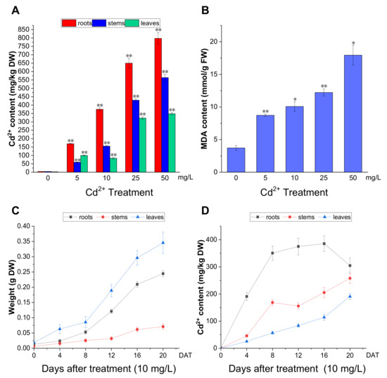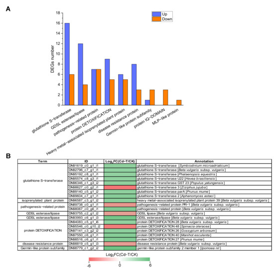 2.13. Defense System-Related Genes Were Differentially Expressed under Cd2+ Stress