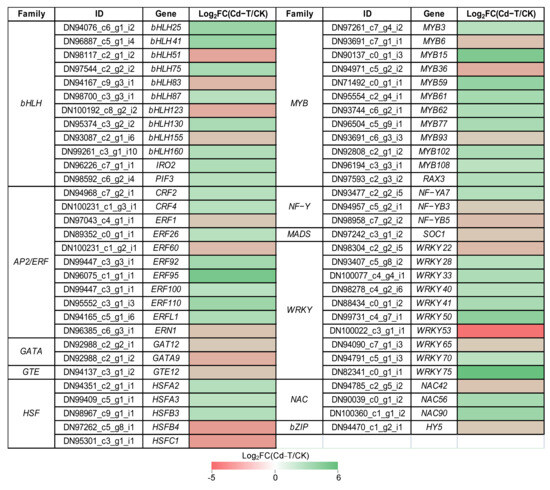 2.9. Transcription Factors Were Differentially Expressed under Cd2+ Stress