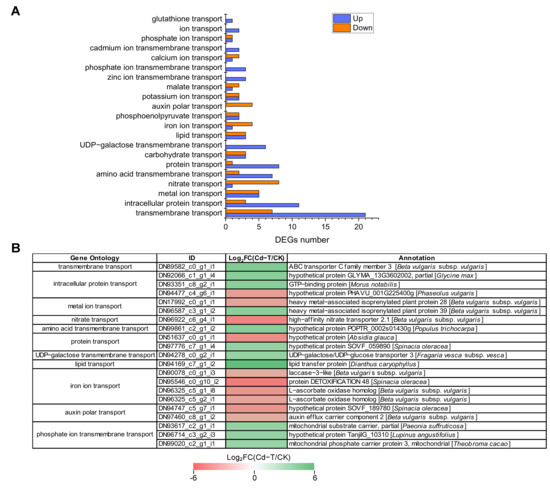 2.12. Membrane Proteins and Ion Transporters Were Differentially Expressed under Cd2+ Stress
