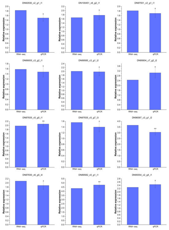 2.14. Validation of the DEGs by Real-Time PCR Analysis